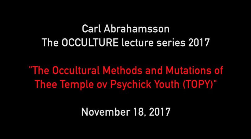 Art, magic, and the occult have been intimately linked since our prehistoric ancestors created the first cave paintings some 50,000 years ago. As civilizations developed, these esoteric forces continued to drive culture forward, both visibly and behind the scenes, from the Hermetic ideas of the Renaissance, to the ethereal worlds of 19th century Symbolism, to the occult interests of the Surrealists. In this lecture/webinar series exploring “occulture” – the liminal space where art and magic meet – I reveal the integral role played by magic and occultism in the development of culture throughout history as well as their relevance to the continuing survival of art and creativity. Blending magical history and esoteric philosophy, I look at the phenomena and people who have been seminal in modern esoteric developments. The occultural methods and mutations of Thee Temple Ov Psychick Youth (TOPY) have left a legacy that continues to inspire. In this talk, I look back at my time...