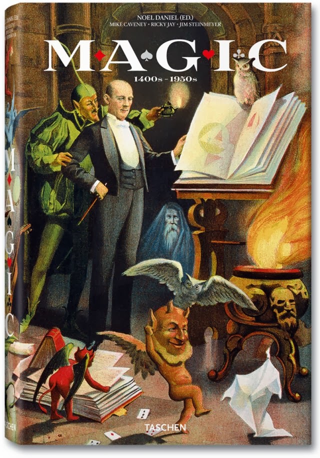 Magic is not only a cultural sphere consisting of compensatorily inclined individuals with inflated egos wallowing in arcane structures and symbols (I can hear you: “Look who’s talking!”, right?). Let’s call that “Sphere 1”. There is also another cultural sphere based on trickery, illusions and mentalism that goes by the same name: “Sphere 2”. Sometimes they seem to co-exist. The megavolume Magic 1400s-1950s, recently issued by Taschen, touches upon Sphere 2 and its related cultural impact. Amply illustrated, the book is also a mind blowing tour of classic advertising for magic shows and other alluring events. Flyers, posters, photos and reviews are superbly reproduced, and it’s an absolute joy to flip through the 650 pages of this truly heavy volume. It’s in this image material and in the introduction to stage magic that Magic 1400s-1950s earns its merits. Textually, it draws many erroneous conclusions in comparing Sphere 1...