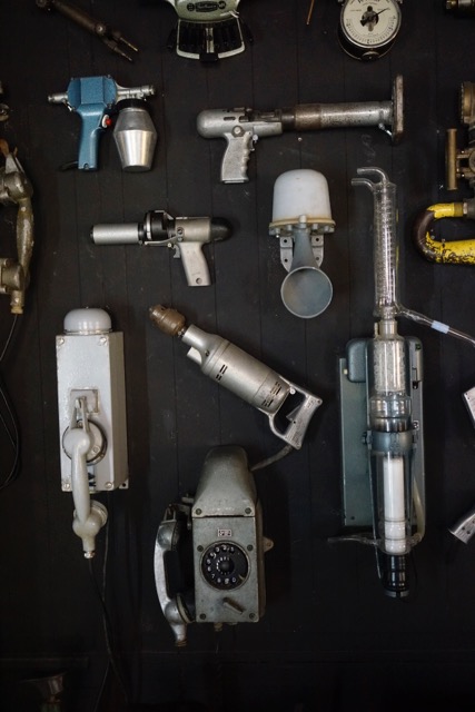 This struck me at first as a bit strained, like an ironic Duchampian twist of “readymades”. Gather up a lot of weird machines, dismount them and then re-assemble in a jumble. But then it hit me that this entire place contains most of all what could be called a proto-German attitude. A “Geist”. Although created and run by someone I believe is Russian (perfectly introducing his place in fluent German, English and Russian), the entire mentality is ultimately German: a manic, empiric, ruthlessly curious mind-frame dismantling engineered utilitarian items, examining the pieces intelligently, and then equally meticulously putting the bits together again to create new life forms. The mania is what counts here. Ever onwards with tools in hand, no matter what. With superior engineering skills. And a sublime aestheticised art brut sensitivity on top.